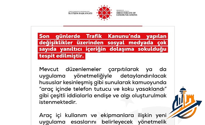 "Araçlarda koku veya telefon tutucu bulundurulması nedeniyle sürücülere cezai işlem uygulandığı yönündeki paylaşımlar gerçeği yansıtmamaktadır. Bu tür asılsız ve yanıltıcı içeriklere itibar edilmemesi önem arz etmektedir."