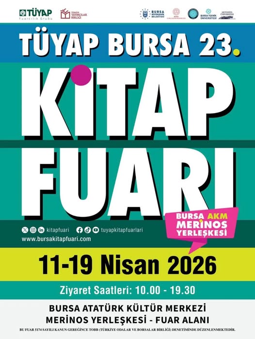 BURSA – Marmara Bölgesi'nin en önemli kültürel buluşmalarından biri olan ve her yıl yüz binlerce kitapseveri ağırlayan Bursa 23. Kitap Fuarı, bu yıl 11-19 Nisan tarihleri arasında kapılarını açıyor. Yayın dünyasının nabzının atacağı organizasyon, Bursa Atatürk Kültür Merkezi (AKM) Fuar Alanı'nda gerçekleştirilecek. Fuar, yüzlerce yayınevi, yazar, şair ve akademisyeni okurlarıyla bir araya getirerek şehre adeta bir edebiyat bayramı yaşatacak.