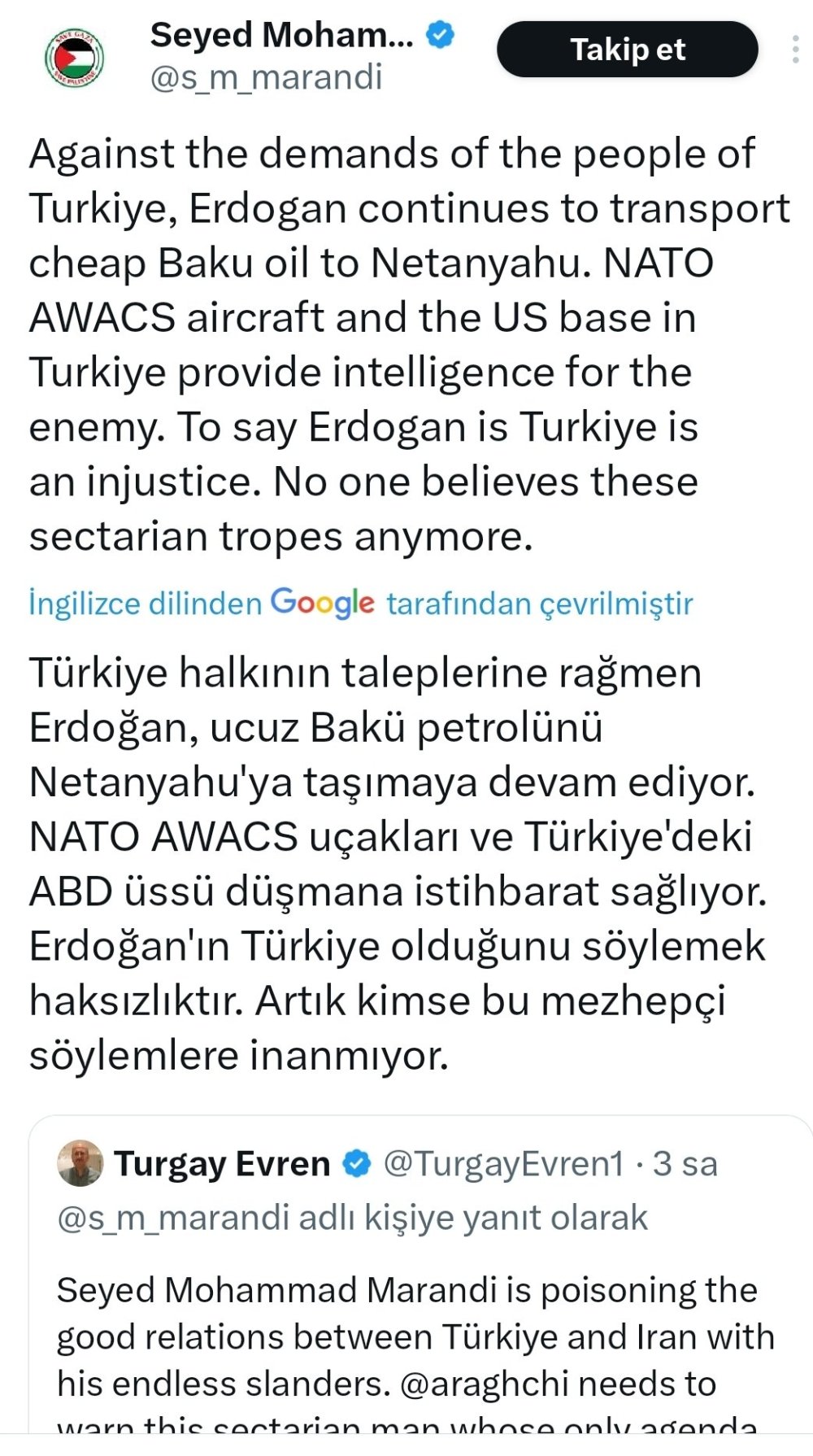 Marandi, TSK ve ASELSAN mensubu kahramanlarımızın şehadetine yol açan trajik kazanın hemen ardından, Türkiye’yi "karanlık koalisyonların ortağı" olarak niteleyen mesnetsiz ve ahlak sınırlarını zorlayan ifadeler kullandı. Stratejik analiz adı altında servis edilen bu zehirli dil, sadece bir kişiye değil, Türk milletinin egemenlik haklarına ve şehitlerinin kanına yönelik açık bir husumet beyanıdır.