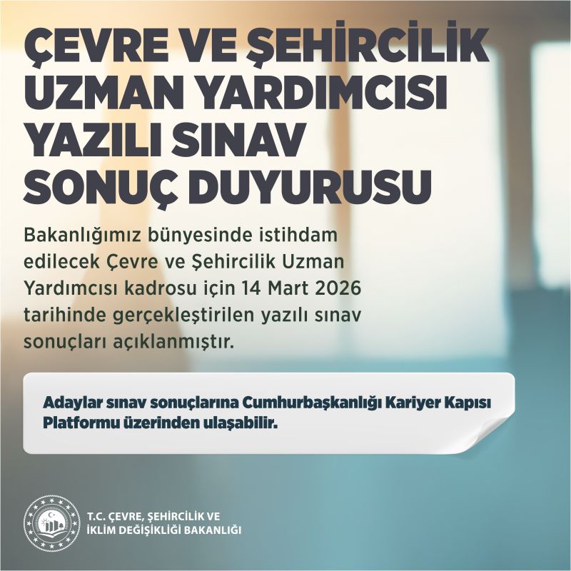 ANKARA – Çevre, Şehircilik ve İklim Değişikliği Bakanlığı bünyesinde görev alacak yeni uzman yardımcılarını belirleyecek kritik süreçte bir aşama daha tamamlandı. Bakanlık tarafından 14 Mart tarihinde gerçekleştirilen "Çevre ve Şehircilik Uzman Yardımcılığı" yazılı sınavının sonuçları resmi olarak kamuoyuna duyuruldu.